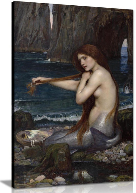 A Mermaid John William Waterhouse Canvas Wall Art Picture Print. Quality You'll Love With Archival Grade Materials & Vivid Colours . This Beautiful Canvas Wall Art Will Brighten Up the decor in your Home, Office, Living Room, Bedroom, Nursery & even Bathrooms!