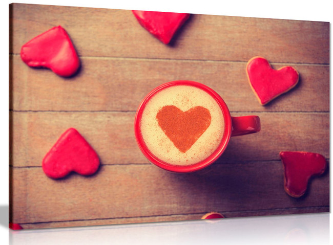 Coffee Mug With Love Heart Canvas Wall Art Picture Print . Quality You'll Love With Archival Grade Materials & Vivid Colours . This Beautiful Canvas Wall Art Will Brighten Up Your Home!